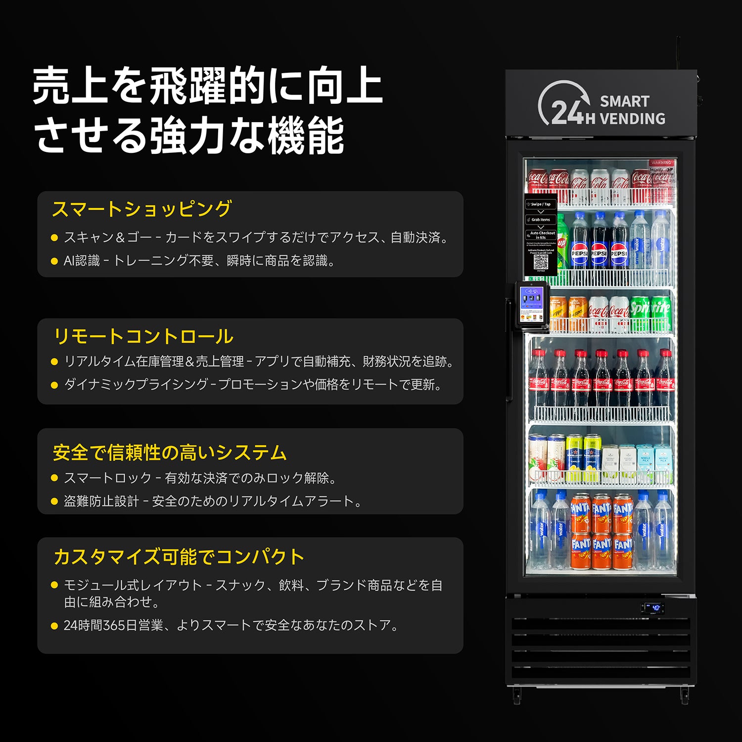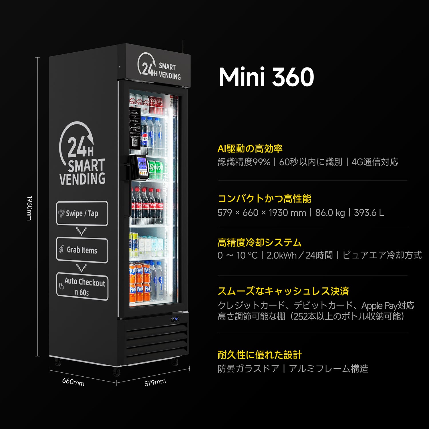 HAHA AI Vending Mini 360 | タッチカードリーダー - 252本のボトルを収納できるスマート冷蔵コンボ