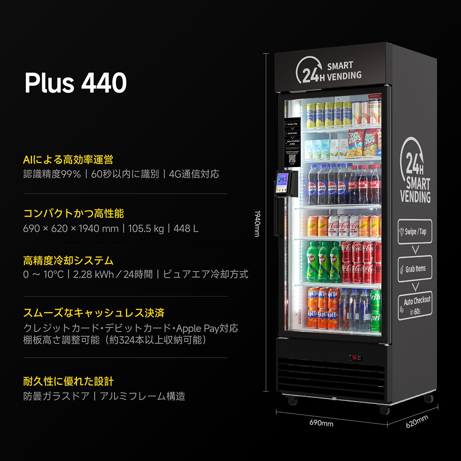 HAHA AI Vending Plus 440 | POS/NFC - 飲料フォーカススマート冷蔵、324本収納スペース付き